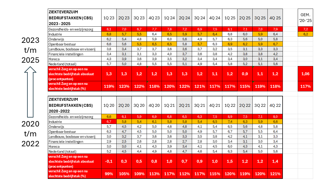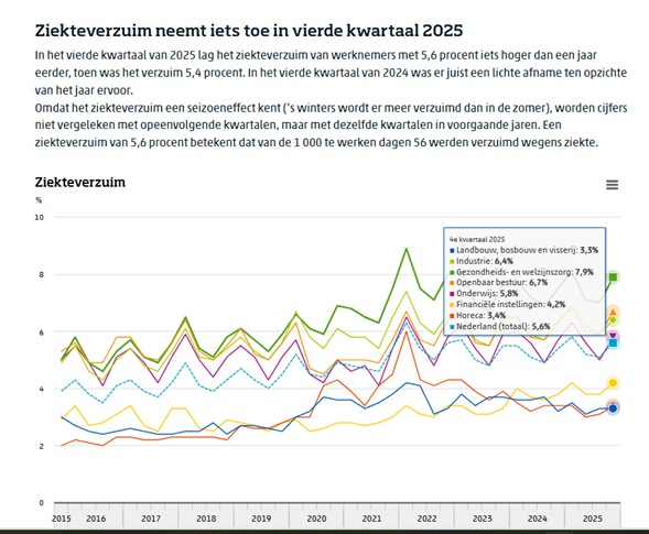 Het zijn de kille cijfers als we gaan totaliseren, nu de cijfers van het ziekteverzuim in het 4e kwartaal van 2025 bekend zijn.
