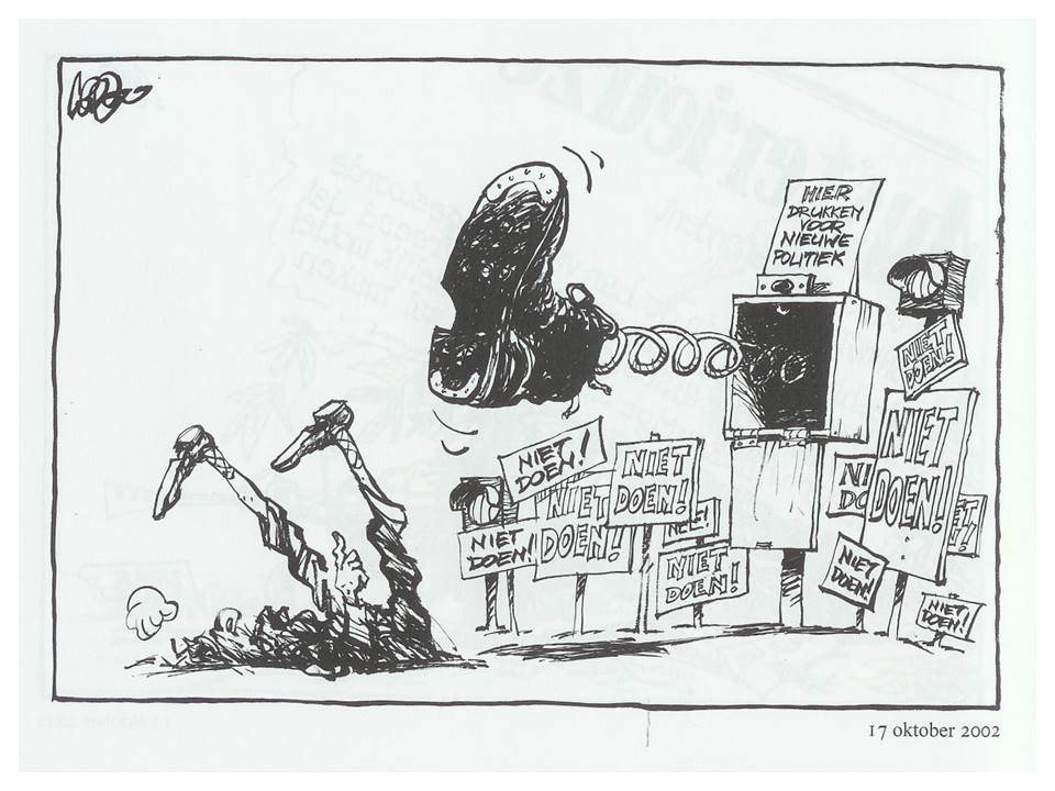 Het oranje gevoel, van holland house tot maxima, biedt ons de uitlaatklep. Wat ons verder vooral bij elkaar houdt zijn onze gedeelde taal en de vruchten van de vooruitgang (de rechtsstaat, ons technologisch vermogen, onze economische welvaart). Het is niet verbazingwekkend dat juist een ikoon van onze anarchistische vrijheid het slachtoffer werd van de woede van een verdwaalde idioot. Als ik, blanke Nederlander uit de randstad, jou, andere blanke Nederlander van buiten de randstad uitscheld, dan doet dat hooguit pijn en kan ik wat jou betreft door de stront zakken. Punt uit en daarmee basta. Maar als ik, blanke Nederlander uit de randstad, jou, niet-blanke medelander die mij in geen enkel opzicht begrijpt en niets met mij gemeenschappelijks deelt, uitscheld voor geitenneuker, dan is dat gevaarlijk riskant. Deze les zijn we vergeten: we zijn vergeten respect te tonen voor elkaar. Het mekaar afzeiken heeft sinds het midden van de jaren ’80 een grote vlucht genomen. Ik kan niet nalaten op te merken dat publieke mediafiguren ermee begonnen zijn.