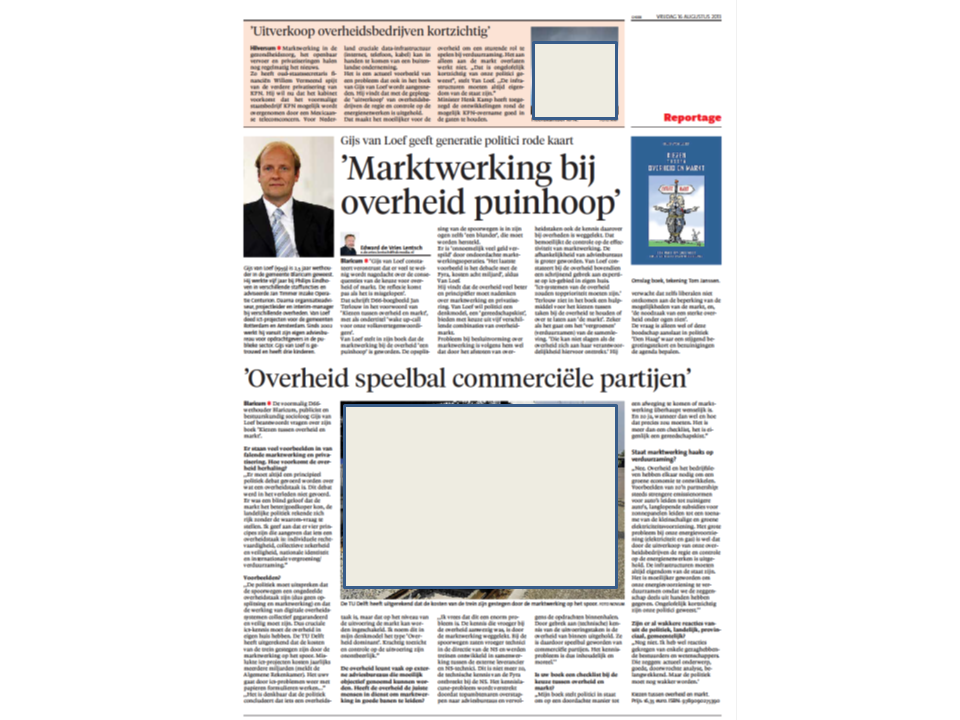 ‘Marktwerking bij overheid puinhoop’, ‘Overheid speelbal commerciele partijen’ en ‘Uitverkoop overheidsbedrijven kortzichtig’.