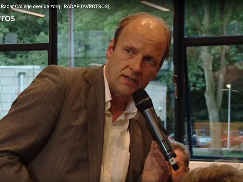 Kijk hier naar het extra Radar College voor een uitverkochte zaal. Dit college werd speciaal ingelast naar aanleiding van de overweldigende belangstelling voor de twee uitzendingen van AVRO/TROS over de marktwerking in de zorg: https://www.youtube.com/watch?v=uQoN1o-DDMc . Kijk vanaf 1:33:15 naar een vragensteller van Kliniek Kop & Lijf, mevrouw Els Staal en mijn reactie en aanbieding van de analyse van de randvoorwaarden van de gereguleerde marktwerking aan de sprekers Beatrijs Smulders en Jan Rotmans en aan voorzitter en moderator Antoinette Hertsenberg (in totaal circa 3 minuten).