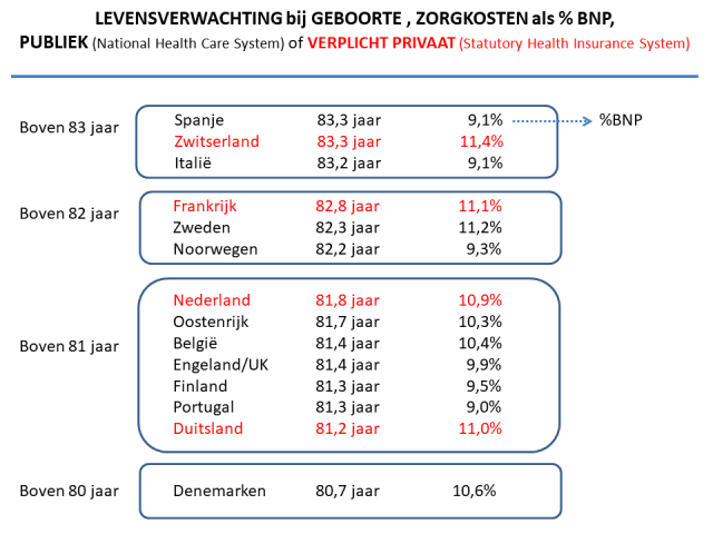 2e – De Nederlandse levensverwachting bij geboorte is 81,8 jaar, zes moderne Europese landen hebben een hogere levensverwachting (Spanje, Zwitserland, Italie, Frankrijk, Zweden, Noorwegen). De Nederlandse man heeft een levensverwachting van 80 jaar (6e plaats), de Nederlandse vrouw heeft een levensverwachting van 83,5 jaar (12e plaats). bron: OESO, 2016 (ook: RIVM). Nota Bene: dit punt gaat over een belangrijk detail, de levensverwachting bij geboorte. De reden dat ik het noem, is om een tegenwicht te geven aan de gekleurde berichtgeving van de beleidsoverheid over de levensverwachting. Zie verder: https://gijsvanloef.nl/2017/09/10/onze-levensverwachting-2-het-rivm-persisteert-in-tendentieuze-berichtgeving/