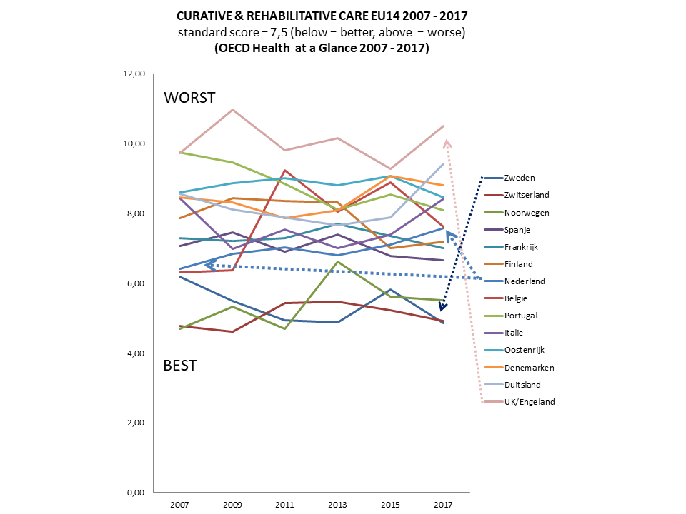 De kwaliteit van de Nederlandse medische zorg gaat achteruit in vergelijking met die in de ons omringende landen. Hoe komt dat? Ruim een jaar geleden schreef ik hier twee blogs over de kwaliteit van ons medisch zorgstelsel in vergelijking met andere moderne Europese landen. Mijn conclusie was toen dat de kwaliteit van de Nederlandse medische zorg onder het gemiddelde niveau ligt en dat de kosten hoog zijn. Een schokkende vaststelling, die niet te rijmen viel met de prachtige jaarlijkse topnotering van Nederland in de European Health Consumer Index…