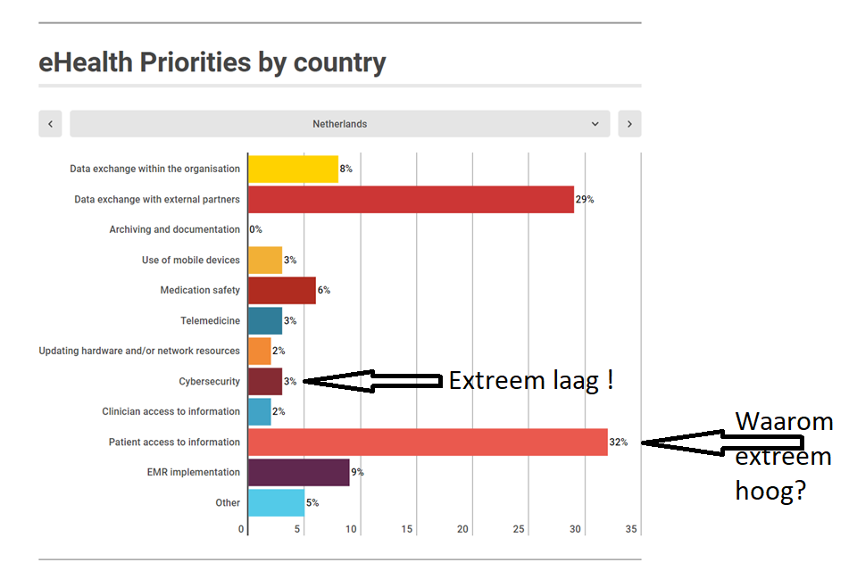 Nederland onderscheidt zich in negatieve zin met haar uitgaven aan Cybersecurity, met slechts 3% het laagste bedrag van alle landen. Hoe groot is de kans op hackers’ access to patient information?