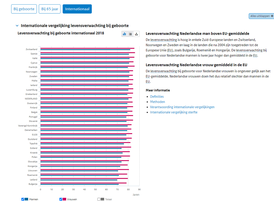 NB De tekst over de levensverwachting van de Nederlandse man is nu aangepast: ‘Levensverwachting Nederlandse man boven EU-gemiddelde’ is een correcte weergave van de feiten.