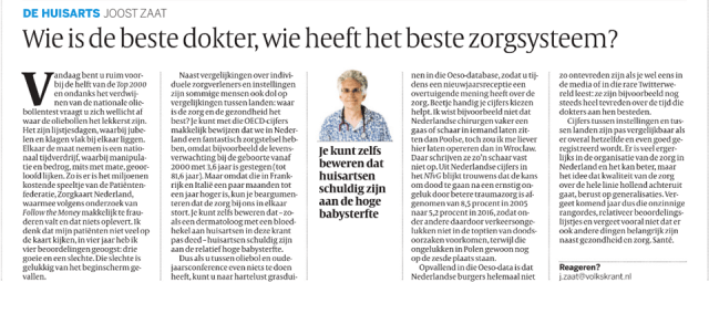 Waarom reageren op een opinie in de vorm van een column? Omdat de column in de Volkskrant staat en de columnist de beeldvorming van de kwaliteit van de gezondheidszorg beinvloedt.