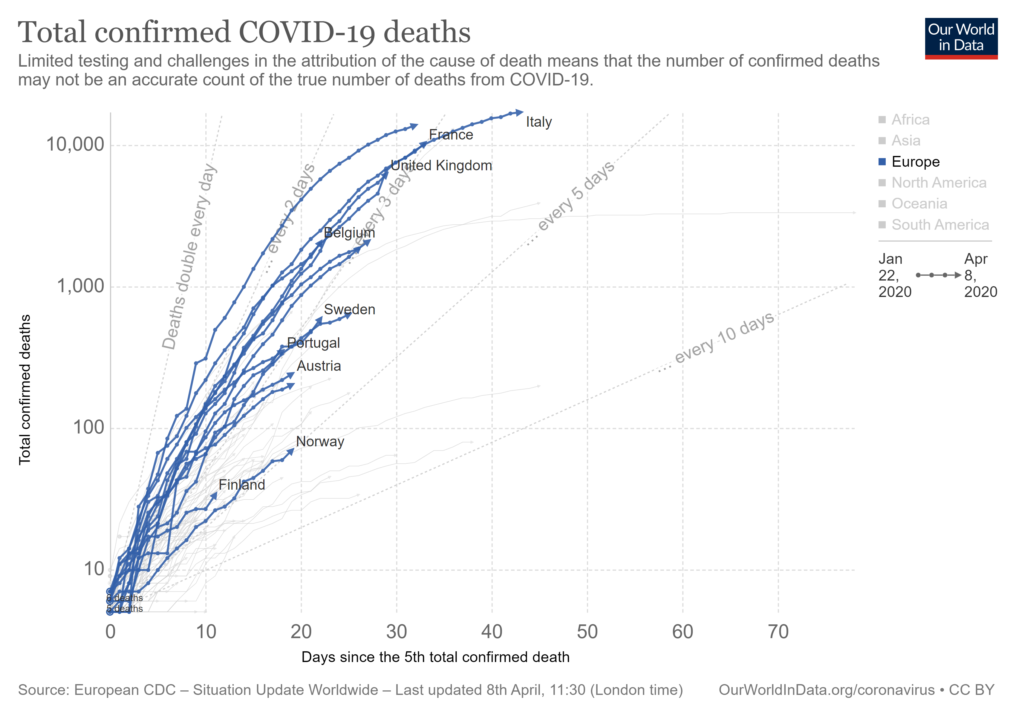The Guardian – Coronavirus cases and deaths over time: how countries compare around the world TheGuardian Datablog