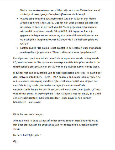 🔵Mijn kritiek op het laatste advies van het @C19RedTeam verwoord ik in een tekst die de leden van het redteam vanavond van mij ontvangen. Einde bericht op twitter.