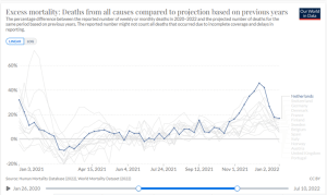NB: De verschillen tussen het CBS en Ourworldindata zijn in 2022 nog veel groter! Gevisualiseerd, is dit wat er gebeurd is met de weergave van de nederlandse cijfers (CBS):
