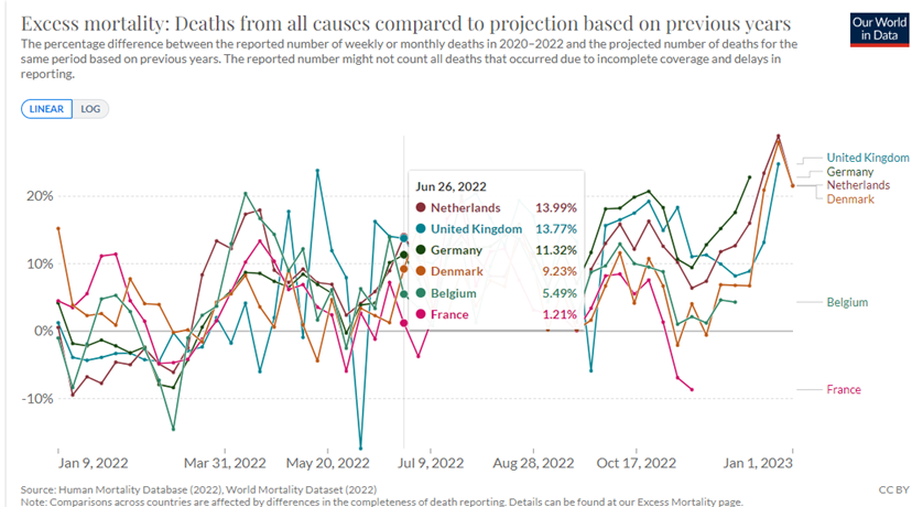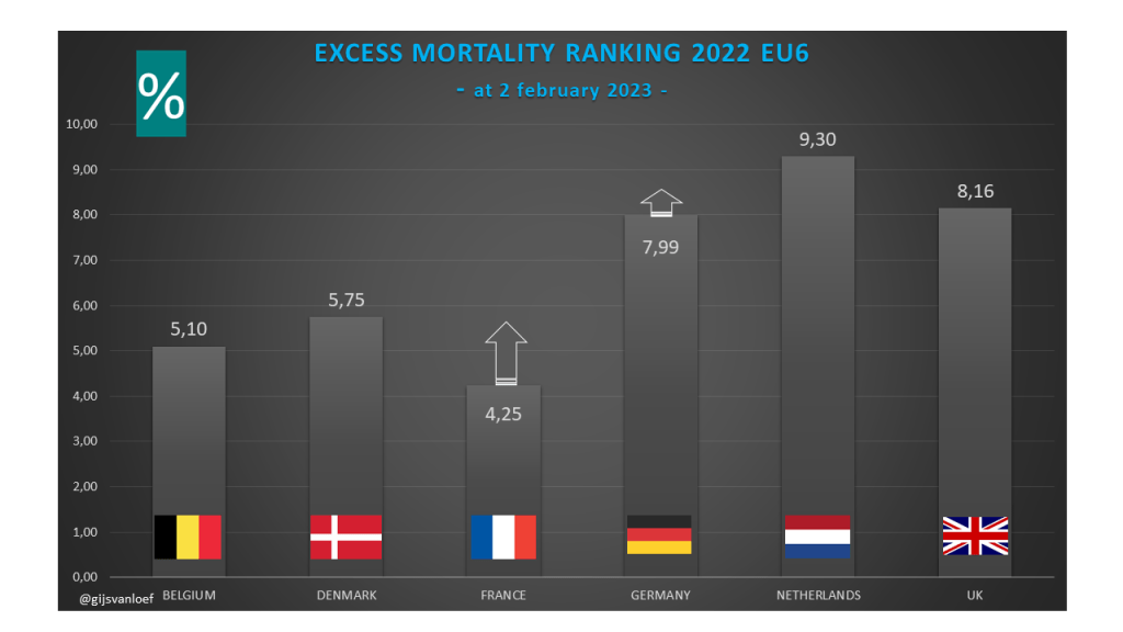 Het zou nu worden: ‘Nederland heeft na Duitsland in 2022 de hoogste oversterfte van de EU6′. Nieuwe cijfers, nieuwe conclusies.
