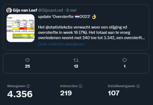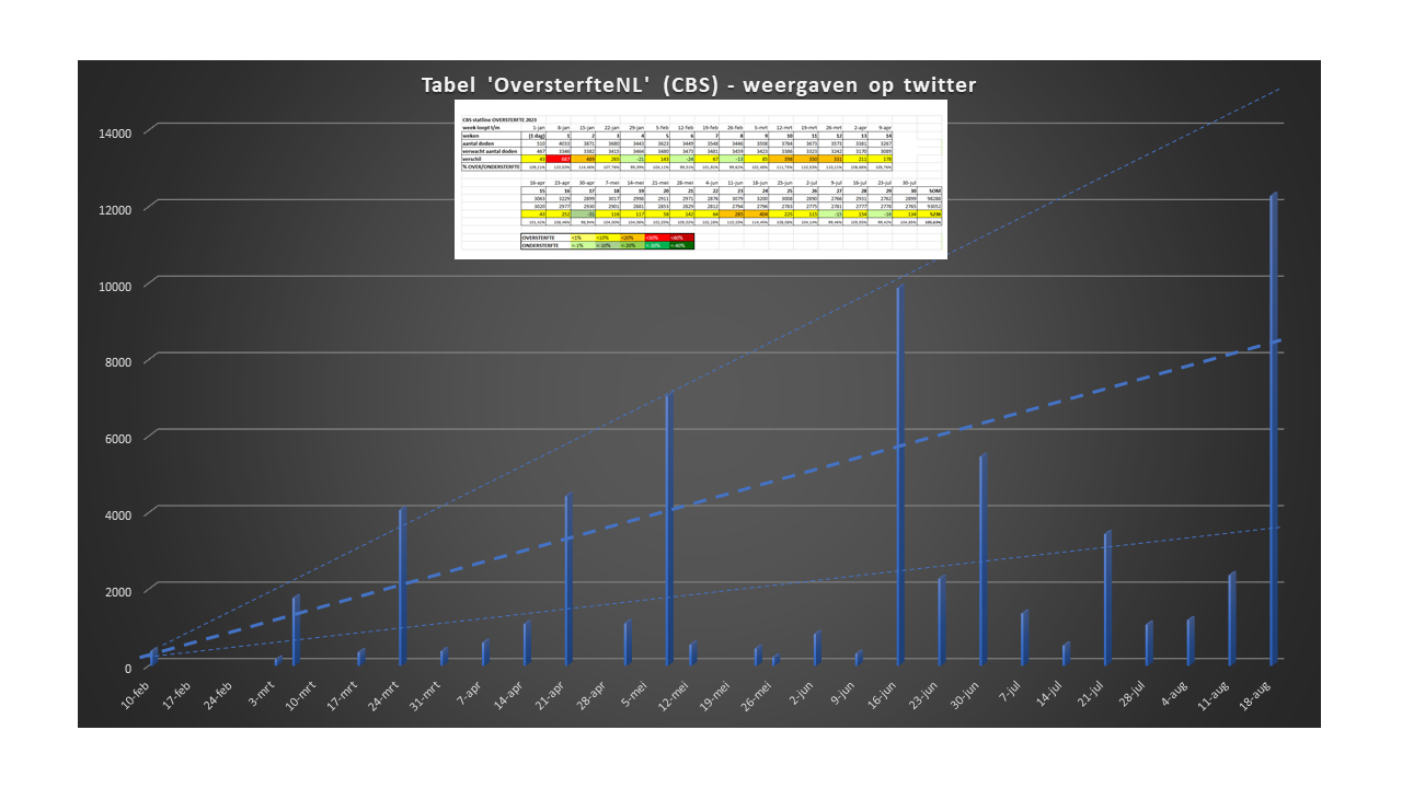 update 21 augustus – Aantal weergaven CBS statline OVERSTERFTE 2023(‘OversterfteNL’) op twitter.