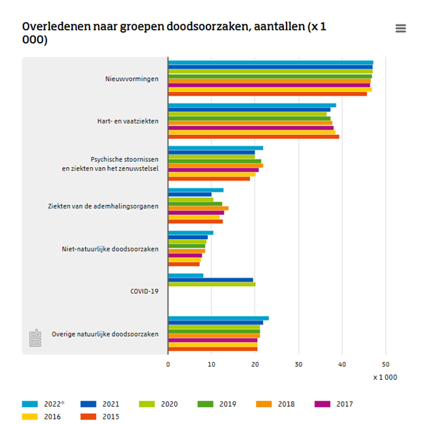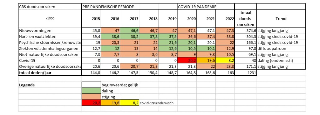 Op 26 april reageerde ik op een tweet van Michiel van der Geest die een verhaal schreef in de Volkskrant. De tabel ‘Overzicht doodsoorzaken 2015-2022’ had ik nog niet gepubliceerd op de website.