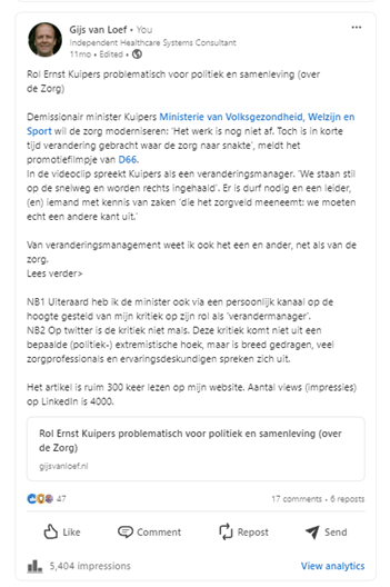 De manier waarop Ernst Kuipers afscheid nam als minister VWS…