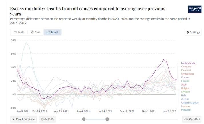 Hebben de covidvaccins oversterfte voorkomen, zoals aandachtige bestudering van de grafieken ons laat zien!?