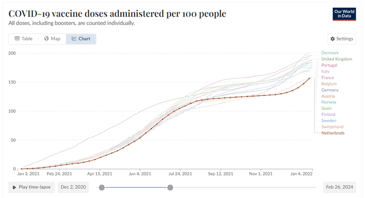 Vaccinatiegraad (data ECDC; no data Switzerland, UK)