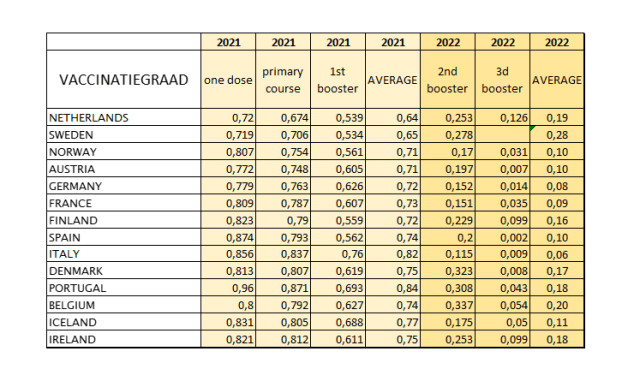 Er woedt een discussie over de vraag of covidvaccins oversterfte hebben voorkomen of veroorzaakt (Maarten Keulemans, Armand Girbes). Hier de statistieken van de 14 West-Europese landen: