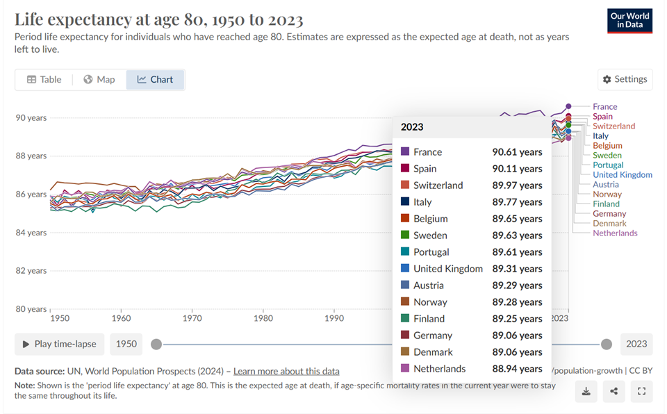 De resterende levensverwachting van onze 80+ers is het kortst van West-Europa.