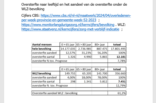 De oversterfte is het grootst onder kwetsbare ouderen (WLZ). Cijfers CBS van 2023.