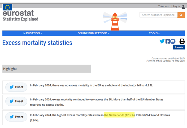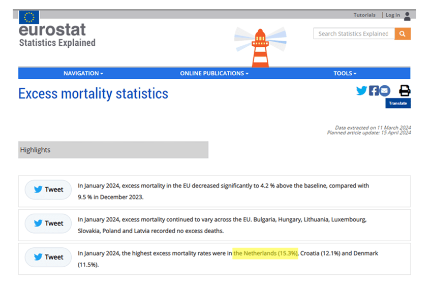Uit de nieuwste cijfers van Eurostat blijkt dat Nederland het enige land in West-Europa is waar de levensverwachting is gedaald sinds 2019. Deskundigen van het CBS en het RIVM reageren niet op deze analyses. Het RIVM (dat eenmaal officieel reageerde, zomer ’24) reageert niet meer op verzoeken. NB vanLoef Research heeft het RIVM driemaal gewezen op onjuiste (te positieve) berichtgeving over de Levensverwachting bij geboorte en driemaal heeft het RIVM moeten corrigeren. Zonder openlijke rectificatie.