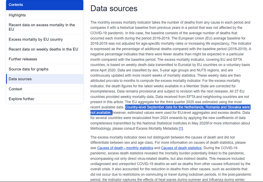 Waarom zien we in het jaar 2025 geen NL-sterftecijfer meer van de 3e maand in het kwartaal, zoals gerapporteerd door Eurostat? Tot vorig jaar (2024) leverde Nederland net als alle andere landen op tijd de maandcijfers aan, zodat Eurostat de complete Highlights kon berichten. En die waren bepaald niet fraai voor ons land…