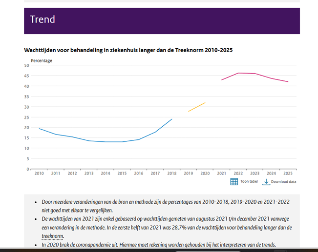 In 2024 werd in 43.6% van de gevallen de maximaal toegestane wachttijd, de Treeknorm, overschreden.