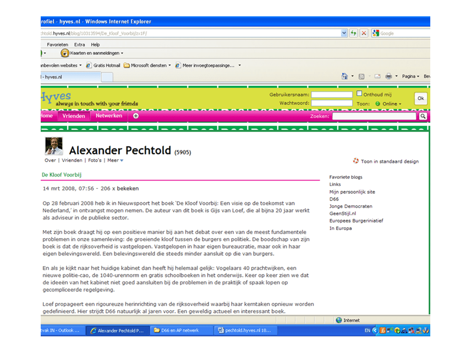 Samenleving en overheid zijn volledig uit balans. De belevingswerelden van de burger en de samenleving enerzijds en de politici en bestuurders van de collectieve sector anderzijds sluiten niet meer op elkaar aan. De twee belevingswerelden zijn van elkaar los geraakt. Dàt is de Kloof.”