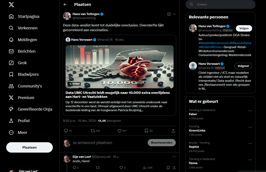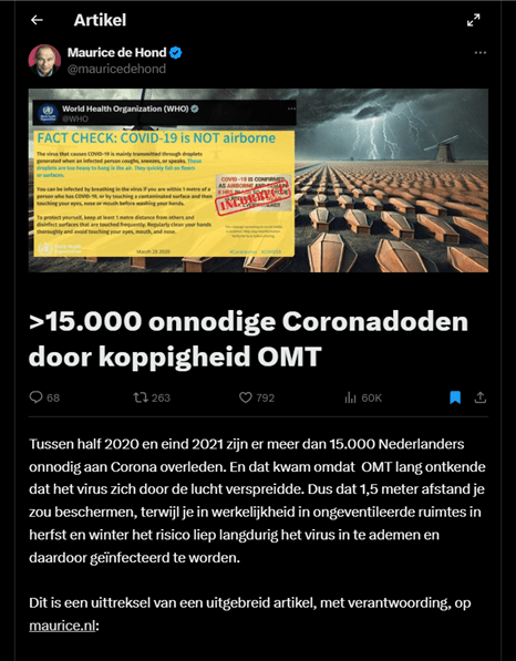 6/3/’25 – Aangezien je het vertikt om te reageren (mijn geduld is nu wel op), hier een citaat dat ik de lezers niet wil onthouden: “De Hond richt de laatste jaren zijn pijlen op de Nederlandse covidbestrijding. De Hond is expert in alles, maar de wereld is een beetje op hem uitgekeken en dat is tragisch. Er rest hem zijn blog, waarop hij tekeer blijft gaan over het Nederlandse covidbeleid.” (vandaag Miquel Ekkelenkamp in Medisch Contact)