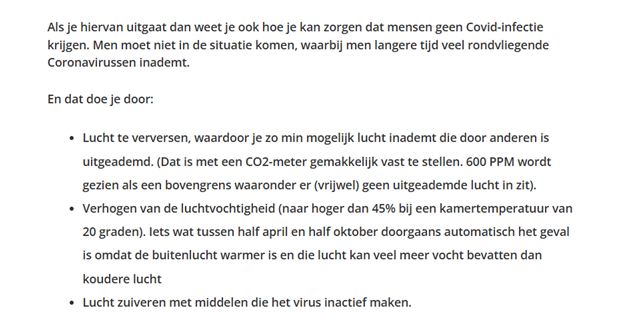 De luchtvochtigheid is het hoogst van oktober tot en met januari, de bewering is dus onjuist. De luchtvochtigheid is het laagst tussen maart en juli. Het is dus (vrijwel) precies omgekeerd! In de donkere en koude maanden van het jaar, laten we zeggen november t/m maart – de periode waarin, volgens MdH kwetsbare ouderen een kans maken op een covid-infectie door een te lage luchtvochtigheid in de binnenruimte – is de luchtvochtigheid buiten (en daarmee ook binnen, waar het warmer is) juist hoog. Waardoor de hele ventilatieredenering van MdH onderuit gaat. Het ‘Deltaplan’ kon in de prullebak.