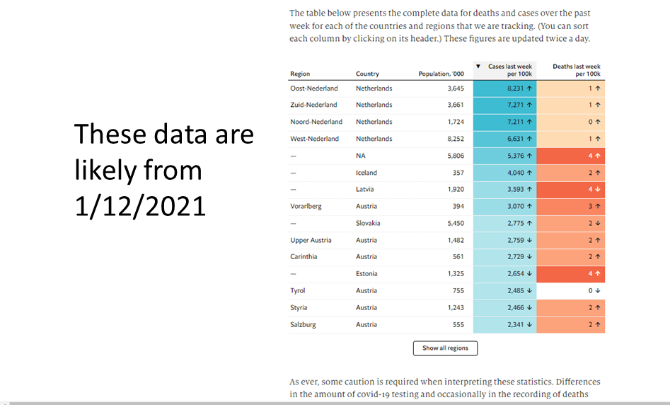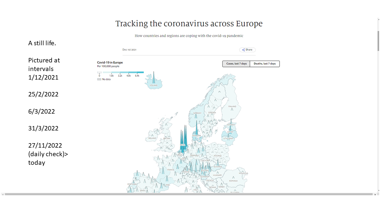 29nov2022 The Economist – A still life of the coronavirus in Europe Geplaatst in corona dashboard, coronavirus, Dutch Data, Economist, english, Platform Betrouwbare Zorgcijfers, publicaties door gijsvanloef 5 june 2023 – The Economist is sort of bleeding it to death… 3 Stills of the website. https://www.economist.com/graphic-detail/tracking-coronavirus-across-europe source: Tracking the coronavirus across Europe, 1/12/2021 The Economist making a mess of ‘coronavirus tracking’ – Ignoring Strategy? https://www.economist.com/graphic-detail/tracking-coronavirus-across-europe A still life: Graphs (New > Old) Tweets referring to the still life (New > Old) In het begin deden ze goed werk, maar de aandacht verslapte idd.— Xander Koolman (@XanderKoolman) December 2, 2022 Almost one year after due date @ECONdailycharts has finally corrected the date of this ominous chart about #COVID19 infections in Europe, highlighting the healthcare collapse (#zorginfarct) in The Netherlands 🇳🇱 Right is correcthttps://t.co/u8L6T7OE0h pic.twitter.com/RrFRMjdEjR— Gijs van Loef (@GijsvanLoef) November 27, 2022 Almost half a year ago, I made this screenshot. And warned @TheEconomist. But, they didn't respond.Today, @OurWorldInData is referring to @TheEconomist data #excessmortality. I wonder, is there any reliable (statistical) data source about #COVID19 and it's effects worldwide?! https://t.co/AI8doQi1mZ— Gijs van Loef (@GijsvanLoef) July 21, 2022 @TheEconomist How come this Fault?!https://t.co/zigHwZ2eNjEurope graph is frozen over time…I mentioned it before on twitter.Please answer! pic.twitter.com/3rXlQECg8D— Gijs van Loef (@GijsvanLoef) March 31, 2022 Somebody at @TheEconomist isn't doing his/her job … This pic hasn't changed in the past month or so? https://t.co/zigHwYKDVL https://t.co/YoEMTLRvXy— Gijs van Loef (@GijsvanLoef) March 18, 2022 Covid-19 data⁰Tracking the coronavirus across EuropeHow countries and regions are coping with the covid-19 pandemichttps://t.co/0jtk59HRkU. @TheEconomist #OV #COVID19NL #GoodLuck pic.twitter.com/6sPlOdFuRy— Doris Voss (@tijdvooreten) March 15, 2022 https://mobile.twitter.com/tijdvooreten/status/1498734169458892810 Is dit een grap? @TheEconomist vandaagDe 🇳🇱registratie blijft ergens een rommeltje…Dat hadden we al gezien>https://t.co/hhPQKOUGA1#Coronavirus Lees hier mijn analyse van de extreme 🇳🇱#oversterfte>https://t.co/UeViyTmuVT pic.twitter.com/F9lGQeFD9r— Gijs van Loef (@GijsvanLoef) February 25, 2022 LinkedIn https://www.linkedin.com/feed/update/urn:li:activity:7003432505533964288 Twitter referring to url Tracking the coronavirus across Europe https://t.co/TyUdRjKYnb pic.twitter.com/vubV8UoYy9— maty || @𝒏𝒂𝒖𝒔𝒄𝒐𝒑𝒊𝒐@𝒒𝒐𝒕𝒐.𝒐𝒓𝒈 (@nauscopio) July 29, 2020 https://mobile.twitter.com/jamesfransham/status/1307680756312027136 Excess mortality NL: Dutch Data? Dit delen:Tweet Klik om te delen op WhatsApp (Opent in een nieuw venster) WhatsApp Klik om dit te e-mailen naar een vriend (Opent in een nieuw venster) E-mail Vind-ik-leuk Aan het laden...
