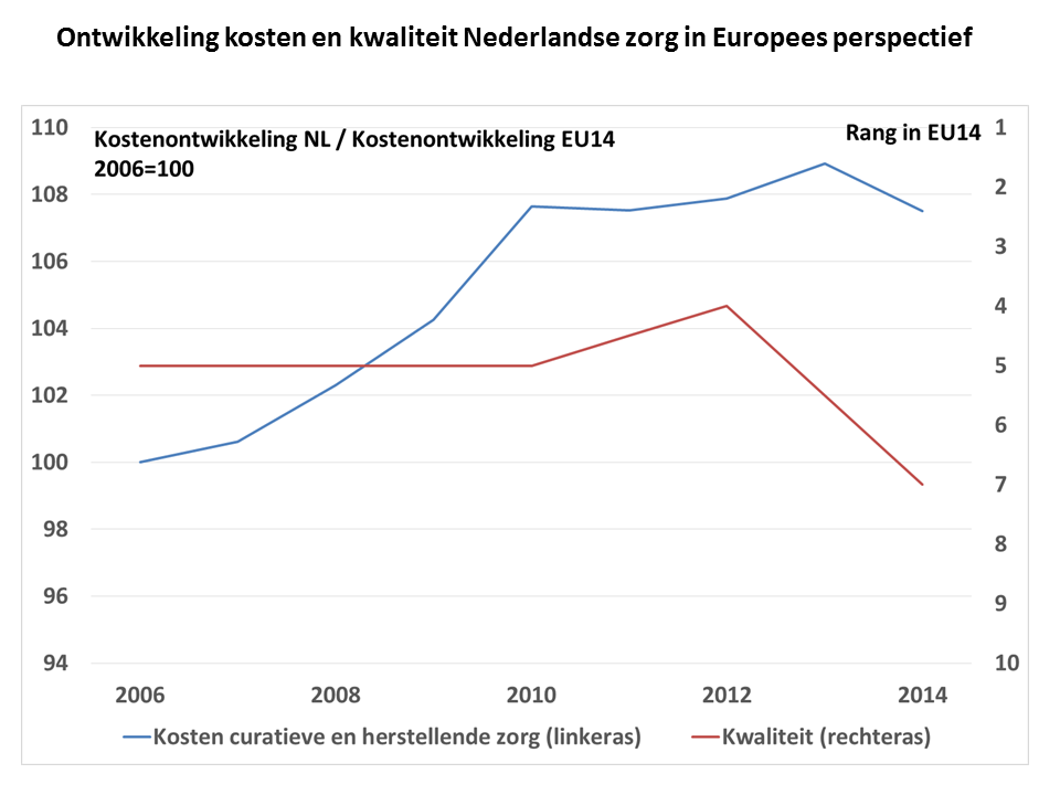 update 23 maart – De conclusie uit het ESB-artikel staat voorlopig recht overeind na een eerste afstemmingsronde met CPB en CBS: “Samenvattend, sinds de invoering van het systeem van gereguleerde marktwerking is de kwaliteit van de medische zorg in internationaal perspectief verslechterd, terwijl de kosten juist disproportioneel zijn gestegen.”
