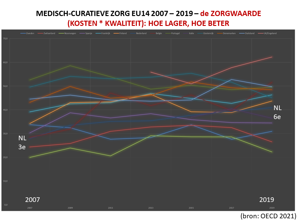 Voor nu verwijs ik naar mijn publicaties op de site (en in ESB, Medisch Contact, de Volkskrant e.v.) en in het bijzonder deze analyse: Kosten en kwaliteit EU14 OECD