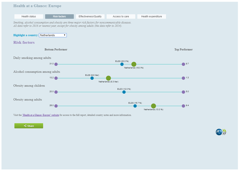 Onlangs verscheen OECD Health at a Glance 2018 met een inzichtelijke trailer van de tweejaarlijkse cyclus van de OECD-rapportages. De volgende data-update kunnen we bij de 2019-jaarcyclus verwachten, ik reken op november 2019. Trailer >