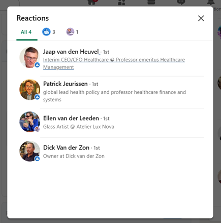 1875 views (website & LinkedIn)– Likes van o.a. 4 zorghoogleraren(bestuurskundig/economisch/medisch), hier op LinkedIn– veel persoonlijke reacties van medici en wetenschappers