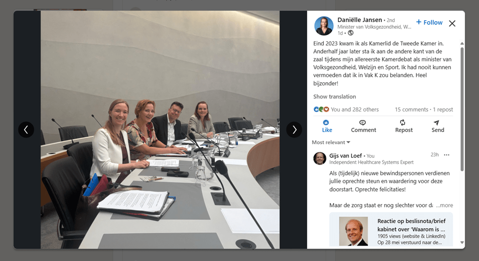 De SG van het ministerie van Infrastructuur & Waterstaat, Jan Hendrik Dronkers, doet er zelfs nog een schepje bovenop. Op Linkedin schrijft hij “Nederland staat voor grote uitdagingen: een woning vinden is lastig, de zorg staat onder druk, en ook thema’s als migratie, stikstof en klimaat vragen om oplossingen.”