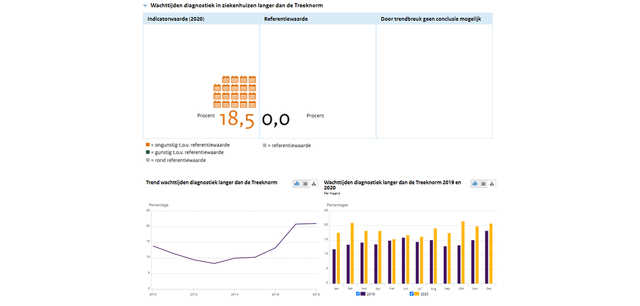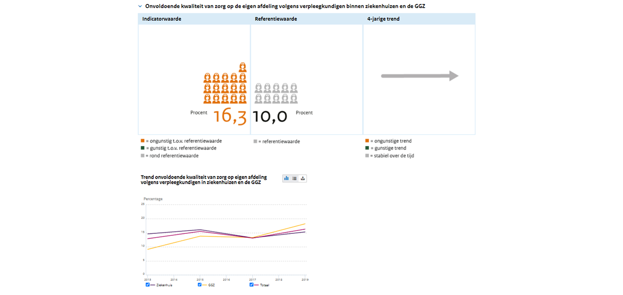 Er is een selectie gemaakt van indicatoren die algemeen zijn (geen specifieke aandoening of ziekte), een aanwijzing vormen voor werkdruk en/of de kwaliteit van de geleverde zorg en een meerjarenbeeld geven (minimaal 5 jaren, doorlopend tot in het heden) waardoor trends zichtbaar zijn. Het betreft in totaal 14 indicatoren. Vrijwel alle indicatoren (12 van de 14) geven aan dat de zorg onder steeds grotere druk staat. De cijfers bevestigen het beeld van een sluipend zorginfarct.
