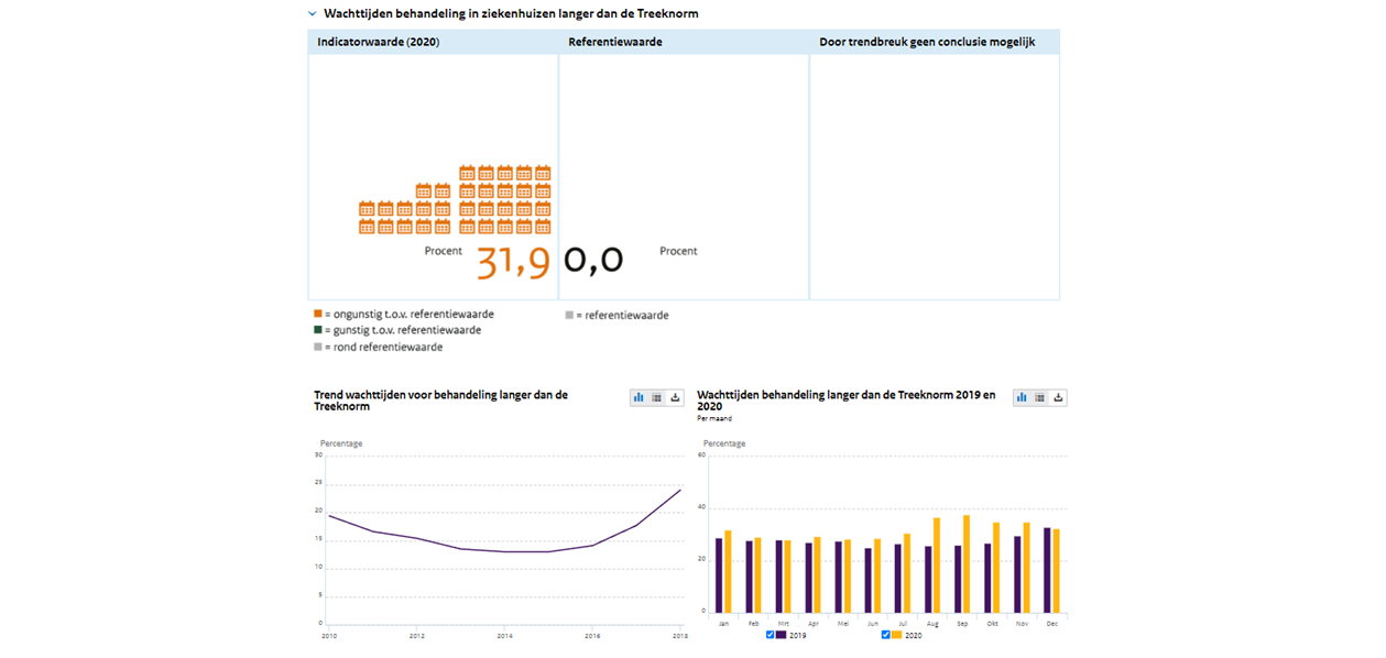 NB1: het RIVM geeft in de helft van de gevallen (7 op 14) een m.i. verkeerde duiding van de trend, in alle gevallen te positief (RIVM zegt stabiel over tijd /neutraal , terwijl de trend neerwaarts/negatief is). Dit wordt hier aangegeven. NB2: op basis van deze criteria zijn alle relevante indicatoren geselecteerd, er is niet selectief geshopt . NB3: cijfers over aanbod van capaciteit zijn niet relevant, net zo min als zorgvraagcijfers. De druk op de zorg komt tot stand in de confrontatie van vraag en aanbod. NB4: kostenindicatoren zijn evenmin relevant.