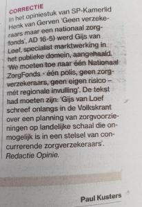 NB Onjuiste weergave in het AD, gevraagd is om de tekst die begint met “Dat sluit aan bij wat de specialist marktwerking in het publieke domein, Gijs van Loef, (…)”, te rectificeren. In het door de auteur, Henk van Gerven (oud-huisarts/woordvoerder zorg als lid Tweede Kamer voor de SP), ingezonden opiniestuk ben ik wel correct aangehaald, zie onder de krantafbeelding. Tekst luistert nauw en voor men het door heeft wordt men geframed.