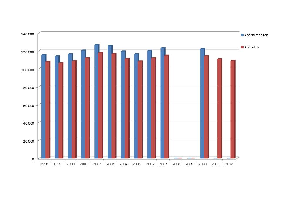In de periode van 1996 tot 2000 zijn geen gegevens over arbeidsplaatsen bij het Rijk verstrekt. Dit gat in de registratie van arbeidsplaatsen is opmerkelijk.